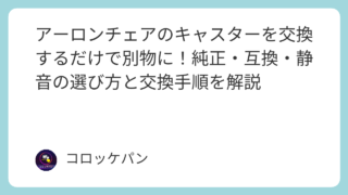メンテナンスTips アーロンチェアのキャスターを交換するだけで別物に!純正・互換・静音の選び方と交換手順を解説 アーロンチェアのキャスター交換を考えているあなたへ。純正品の購入先からAmazonで買える互換キャスター、フローリングを傷めない静音ウレタンキャスターの比較まで、サイズの確認方法・交換手順をわかりやすく解説します。椅子の寿命を延ばしながら床も守りたい方は必読です。 メンテナンスTips
